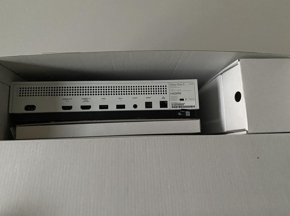 The item is in overall good condition. Includes the console, controller, HDMI cable, power cable and box. Some scratches to the bottom of the console and some signs of wear to the box.