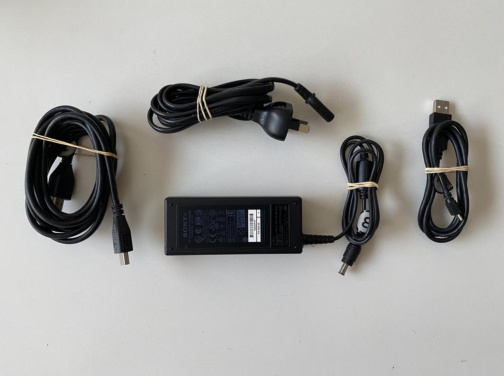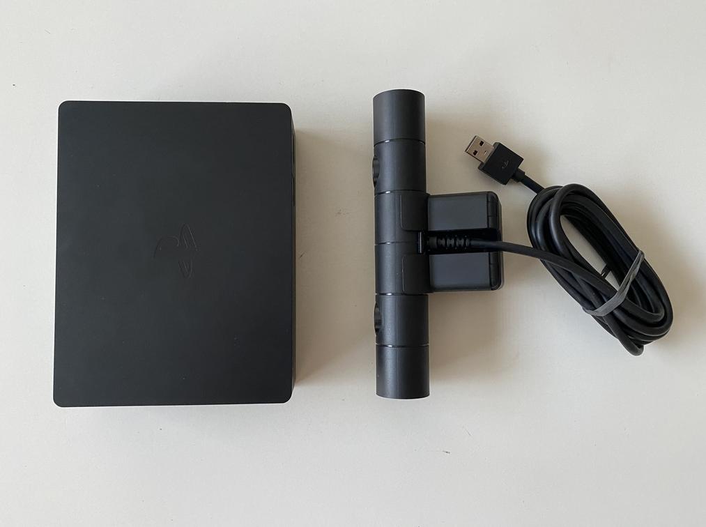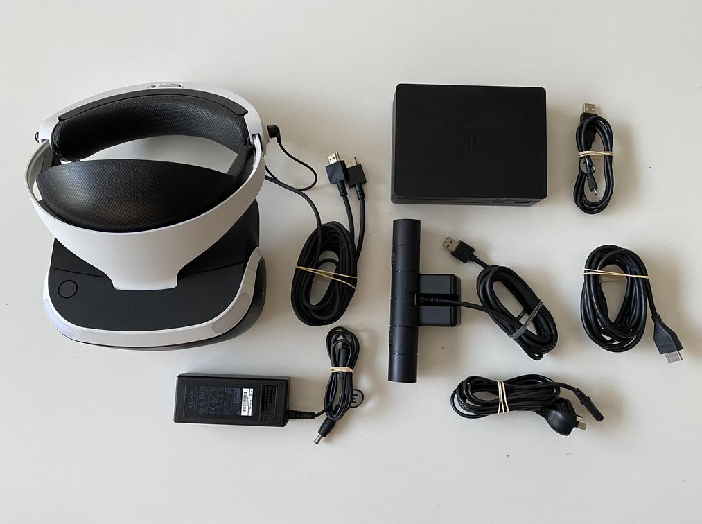 The item is in overall very good condition. It includes the headset, camera, processing unit, HDMI cable, charging cable and power cable. There are some scuffs to the exterior of the headset. There are no other signs of wear to the item.