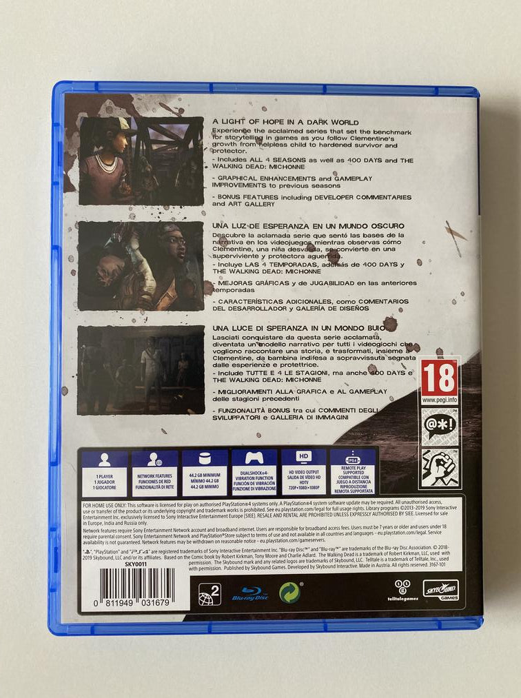 The Walking Dead: The Telltale Definitive Series contains all 4 Seasons, 400 Days, and The Walking Dead: Michonne, which includes over 50 hours of gameplay across 23 unique episodes. With graphical enhancements, behind the scenes bonus features and faithful recreations of classic menus, this is the definitive way to experience Clementine’s journey and find out how her story ends.